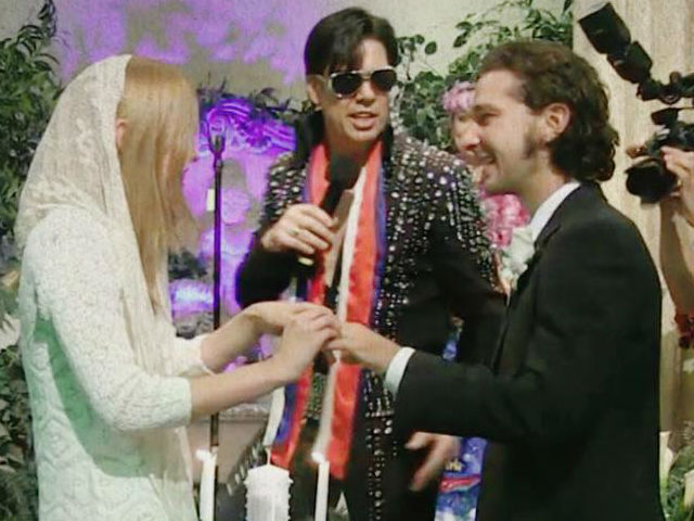 Actor Shia LaBeouf married his longtime girlfriend Mia Goth and they exchanged some unusual vows. The wedding took place at the Viva Las Vegas Chapel in Sin City on Monday. It was officiated by an Elvis Presley impersonator and live-streamed by .