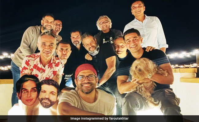 Love is in the air all thanks to power couple Shibani Dandekar and Farhan Akhtar. The director and the actress-TV host are set to exchange vows on February 21 and it looks like the celebrations have begun. And beginning the wedding gala is groom Farhan Akhtar who had a stag party with his friends. Much to the delight of his fans, the actor-director shared a picture on Tuesday with his group and even here, Shibani Dandekar marked her presence. No, she didn't gate-crash the party but a mask with her face can be spotted in the picture alongside a mask of Farhan Akhtar's face. That's not all. In response to Farhan's caption that said, “The boys are back in town #stagdaynightfever,” Shibani wrote, “Um technically I'm there too,” referring to the mask.