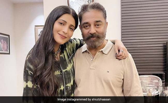 Superstar Kamal Haasan and his daughter, actress Shruti Haasan, occupied a spot on the list of trends on Saturday, courtesy her recent post on Instagram. Shruti Haasan flew to Chennai along with her boyfriend Santanu Hazarika earlier this week and met her father "after ages." The actress, on Friday, shared a set of adorable pictures of herself and Kamal Haasan enjoying each other's company. In the photos, Shruti Haasan can be seen dressed in an oversized shirt and black trousers while Kamal Haasan looks dashing as always in a cream tee and brown pants. "Daddy dearest," wrote Shruti in the caption of her post while sharing a similar photo on her Instagram story, she wrote: "Good to see Papa after ages and ages. Two busy bees."