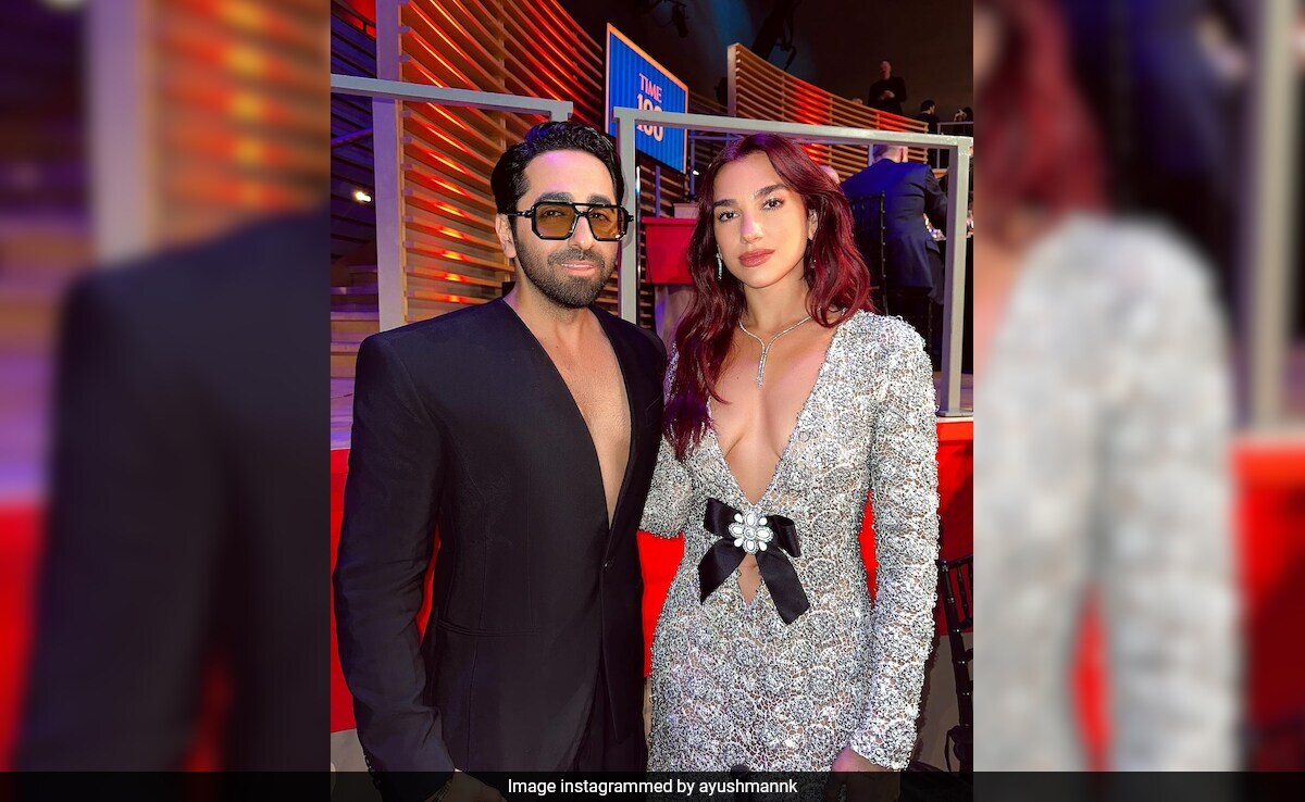 Actor Ayushmann Khurrana attended the Time 100 Gala in New York City and he did it in style. Ayushmann Khurrana had a memorable evening. He recently shared glimpses from the event on social media. The pictures offer a glimpse of his interactions with Hollywood actors and international singers. In one snapshot, Ayushmann is seen laughing with singer Dua Lipa. Ayushmann, sporting a collar-less black jacket and his signature tinted glasses, posed alongside Dua Lipa, who dazzled in a silver dress.