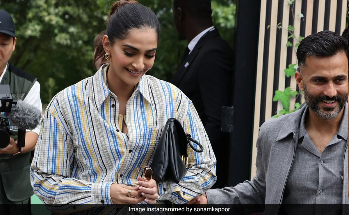Do not disturb Sonam Kapoor. The actress is currently in London, enjoying quality time with her husband, businessman Anand Ahuja. The couple attended the Wimbledon Women's final between Czech Republic's B. Krejčíkova and Italy's J. Paolini. Keeping her fans updated, Sonam shared a series of pictures and videos on Instagram. Let's walk you through her uploads. First, she reposted a video originally shared by Anand. In the clip, Anand asks his better half, “Sonam, where are we going?” In an oh-so-happy tone, Sonam replies, “We are going to Wimbledon. Women's finals.”