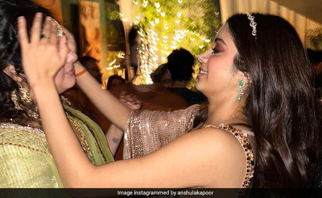 Anshula Kapoor's maang tika also had a special mention in Janhvi Kapoor's Diwali celebrations post. The actress shared several pictures summing up her Diwali festivities on Instagram this week. They are from Sonam Kapoor and producer-writer Amritpal Singh's Diwali parties. In the comments section, Anshula wrote, “My maang tika and I love you” for pictures where she is seen hugging and smiling with Janhvi Kapoor.