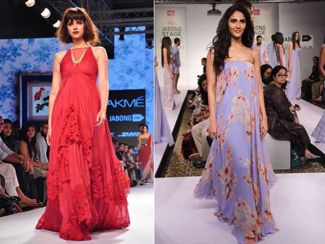 Aditi Rao Hydari, in rust fabric flowers, walked the ramp for Archana Rao and Shuddh Desi Romance actress Vaani Kapoor looked lovely in lavender Sailex.