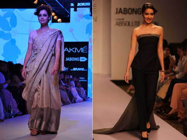 Meanwhile, a smattering of Bollywood celebs were also spotted on the ramp at various shows. Dia Mirza closed designer Anavila Misra's show in a glittering earth-toned sari. Shraddha Kapoor wore minimal black at the Absolut Sculpt show.