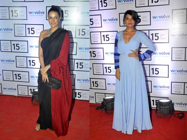 Actress Neha Dhupia wore a Dhruv Kapur dress but Richa Chadda stuck to Manish Malhotra, picking a blue maxidress.