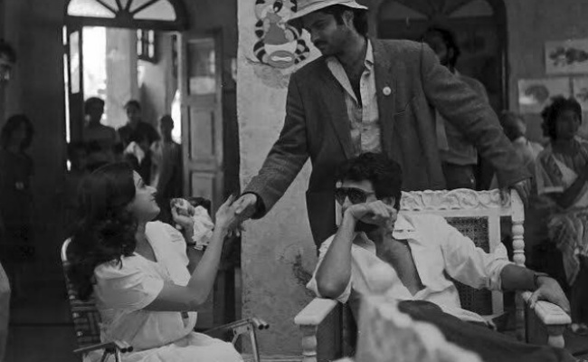 Sridevi, Anil Kapoor and Shekhar Kapur on the sets of Mr India