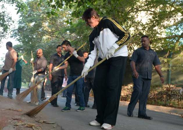 Bollywood uber-celeb Amitabh Bachchan swept streets in Mumbai yesterday as part of the Swachh Bharat campaign launched by Prime Minister Narendra Modi.