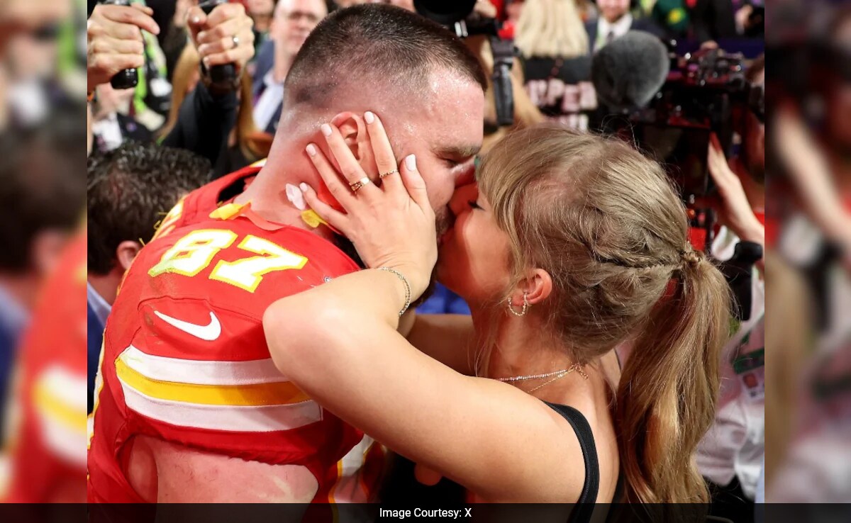 Pop sensation Taylor Swift beamed with joy as her boyfriend Travis Kelce's Kansas City Chiefs won the Super Bowl 2024 against the San Francisco 49ers in Las Vegas. The couple shared a kiss and a warm hug at the stadium after the Chief's big win. "Oh my God," she said to him as she gave him a big hug and multiple kisses. "Unbelievable!" she added as she patted his back, as per Page Six. Kelce and the Chiefs beat the 49ers 25 to 22 in overtime at Allegiant Stadium in Las Vegas. Taylor Swift ran onto the field, where she was spotted hugging and kissing her boyfriend.