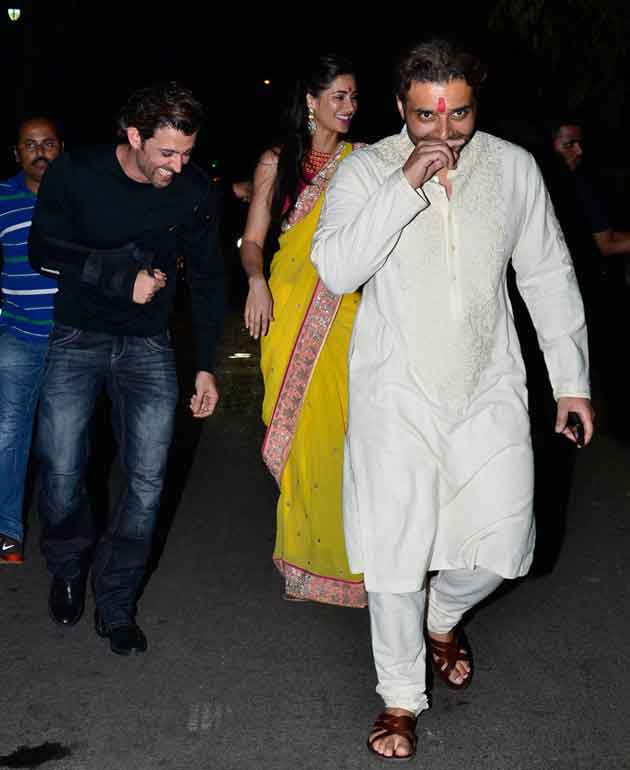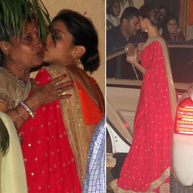 Bachchan niece Naina wore a simple cream and gold sari and attended with fiance Kunal Kapoor. Actress Sonali Bendre and husband Goldie Behl, very close friends of the Bachchans, came with their son Ranveer.