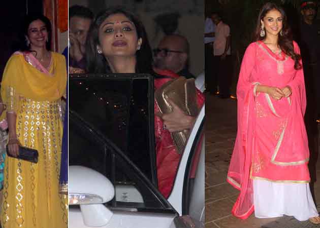 Pregnant Genelia D'Souza and husband Riteish Deshmukh were colour-coordinated in pink and yellow. Actress Raveena Tandon arrived hand-in-hand with husband Anil Thadani.