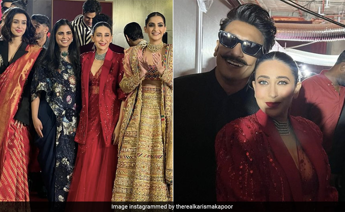 Speaking of Karisma Kapoor's album from last night, the first photo is that of Karisma's OOTD. The second shot features her with Isha Ambani, Sonam Kapoor and Shraddha Kapoor. In another shot, she is seen posing with Janhvi Kapoor, Manish Malhotra and Karan Johar. The next click features Karisma with Vijay Varma and Tamannaah. The actress is seen posing with supermodels Ashley Graham and Elsa Hosk in another picture. Karisma features with Ranveer Singh in another frame. In another photo, she is seen posing with Sara Ali Khan, Janhvi Kapoor and Karan Johar.