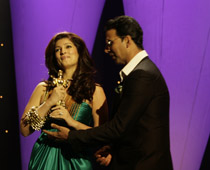 Informs a source "The sequence filmed on the couple is a comic one starting out with Tina walking the red carpet and Akshay butting in and trying to steal the limelight only to have himself pushed out of the frame. Though it was shot impromptu no retakes were done since the scene turned out to be very funny"