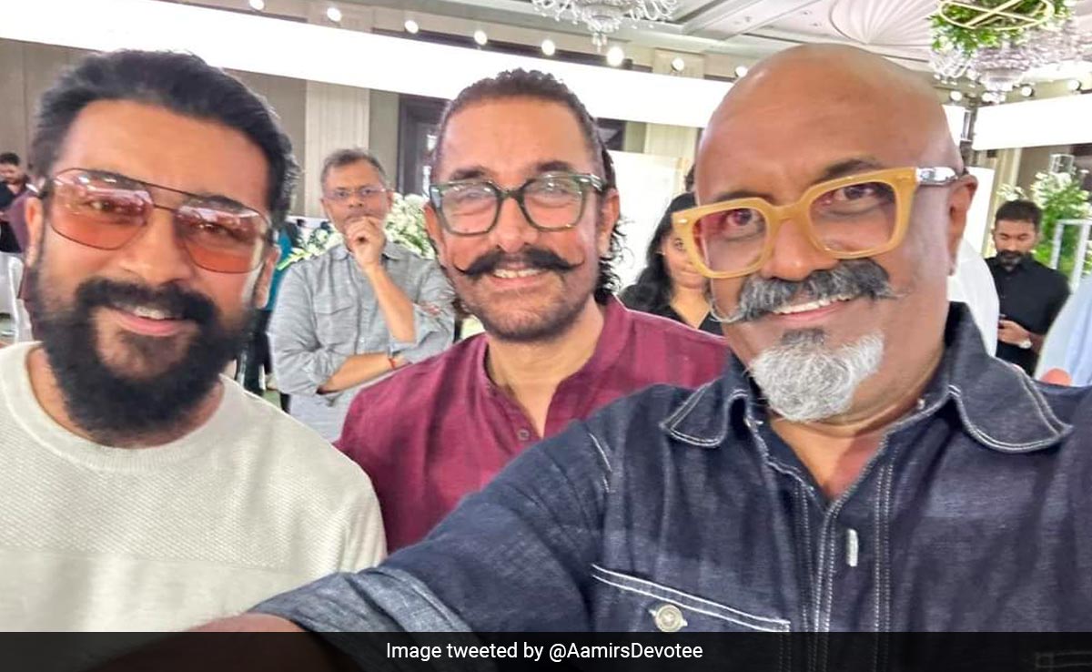 Aamir Khan attended the pre-birthday bash of superstar Kamal Haasan in Chennai. He was pictured with Tamil superstar Suriya at the party. The picture went viral, naturally. Several fan pages dedicated to the two actors shared the picture on social media. Sharing the picture on X (formerly known as Twitter), a fan page wrote in the caption, "Latest click of megastar #AamirKhan and @Suriya_offl. from #Kamal Haasan's birthday party." In the picture, Aamir Khan and Suriya can be seen smiling for the camera. They are joined by a friend who can be seen taking a selfie. Aamir Khan can be seen wearing a maroon-coloured kurta and geek spectacles. He can be seen wearing a hair band as well. Suriya can be seen wearing a white shirt and shades. Take a look at the post here: