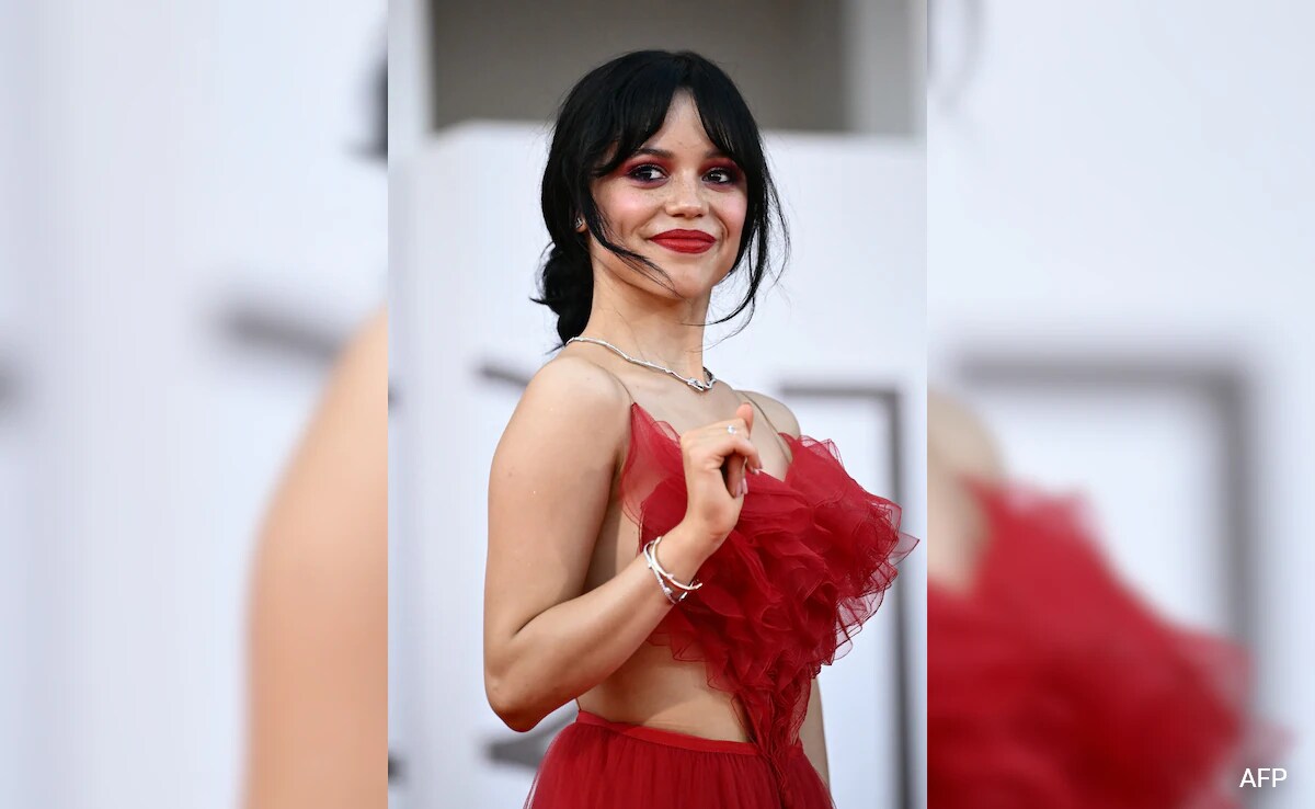 The film again features Michael Keaton as a chaos-causing ghoul, alongside Winona Ryder, Catherine O'Hara, Monica Bellucci and young star Jenna Ortega - who sported a backless red gauze confection that matched the red carpet.