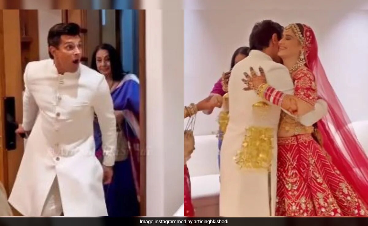 Actress Arti Singh married businessman Dipak Chauhan on Thursday (April 25). Several unseen glimpses from their wedding have been doing the rounds on social media. One of the videos capture Arti Singh's "jigar ka tukda" Karan Singh Grover, Bipasha Basu and their mother seeing her in a bridal look. Karan Singh Grover's emotional reaction to seeing Arti as a bride was just wholesome. He also gives a warm hug to her and refuses to leave her.