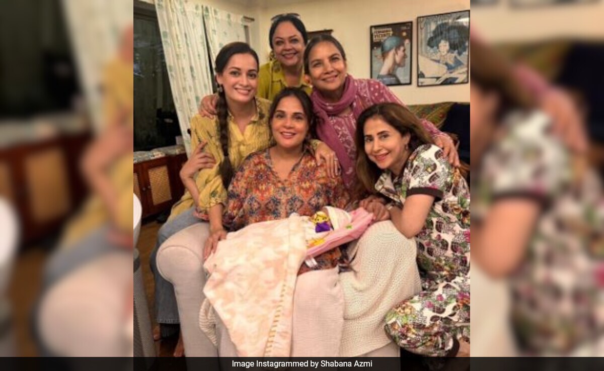 Days after welcoming a baby girl, Richa Chadha received a pleasant surprise from Shabana Azmi and her other friends. On Monday, Shabana Azmi shared a picture on her Instagram feed in which the film veteran, Dia Mirza, Tanvi Azmi and Urmila Matondkar can be seen with Richa Chadha and her baby girl. The baby's face is hidden by an emoji. All the actors can be seen smiling for the cameras. Sharing the picture, Shabana Azmi wrote, "With the khala / Masis of the new mum and baby." Take a look: