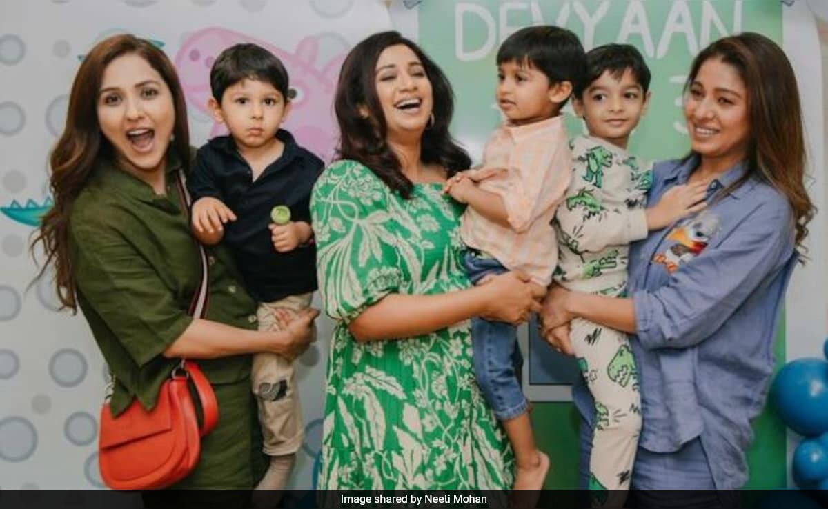Singer Neeti Mohan shared a super duper picture from Shreya Ghoshal's son's Devyaan's 3rd birthday party. The picture features Shreya and her son Devyaan, Sunidhi Chauhan and her son Tegh and Neeti Mohan and her son Aryaveer. The mothers can be seen holding their sons on their lap and posing for the cameras adorably. While Neeti and Sunidhi wear monochrome suits, Shreya can be seen wearing a pretty green dress. Sharing the picture, Neeti Mohan wrote, "Happy 3rd Birthday Dearest Devyaan. May life forever be a celebration as parents for @shreyaghoshal @shiladitya Grandparents Mama and Mami watching cutie Devyaan grow up. Love you @sunidhichauhan5 and Tegh can't get over his dimple. What a fun memorable evening sharing about bachchas, food, mood and tantrums." In the comments section, Shreya Ghoshal wrote, "What a frame." Take a look: