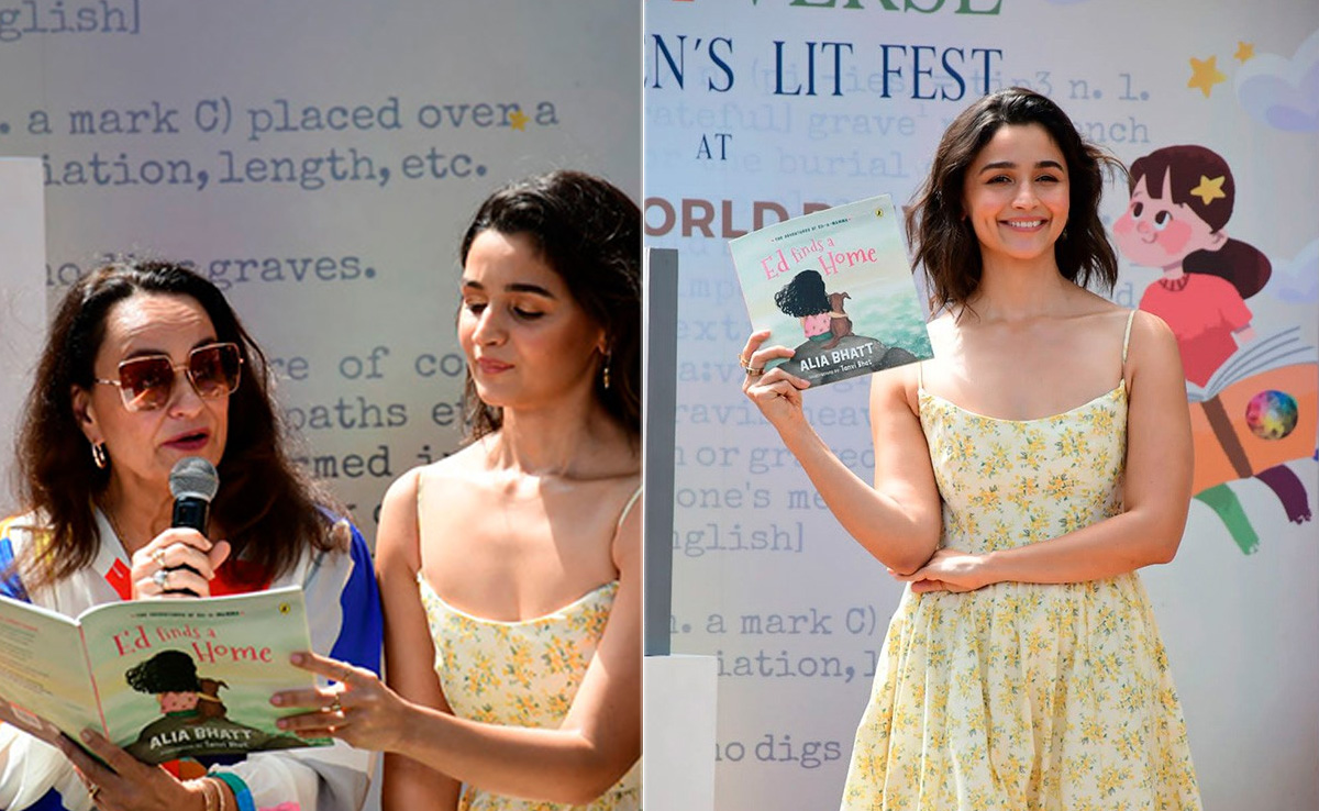 Actor-producer Alia Bhatt added a new feather to her hat. She released her first book ED Finds A Home at the Storyverse - Children's Lit Fest in Mumbai on Sunday. Alia was accompanied by mother Soni Razdan and sister Shaheen Bhatt at the book release event. Alia looked like a ray of sunshine as she wore a sleevless floral printed maxi dress at the event. Alia participated in a reading session for the audience, primarily consisting of children at the event. An excerpt from the book was read by Soni Razdan, Shaheen Bhatt and Alia respectively. After the reading session, Alia interacted with her little fans and took feedback. A video from the event went viral in which Alia can be seen introducing the lead characters of the book to the audience.