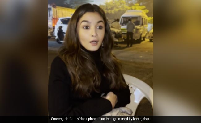 Alia Bhatt found herself at the receiving end of a barrage of questions, courtesy of director Karan Johar. No, this is not a special episode of Koffee With Karan, but just a fun evening on the sets of the duo's next film Rocky Aur Rani Ki Prem Kahani. Between shots, Karan Johar was seen putting Alia in the hot seat as he asked several questions that had the actress fumbling and giggling all at once. The notorious rapid-fire round which Karan Johar called “quick night shoot rapid-fire”, began with him asking Alia what film they were shooting for. Right off the bat, Alia fumbles as she says the name “Rocky Aur Rani Ki Prem Kahani”. To this, Karan Johar says, “Tongue-twister that, right?”