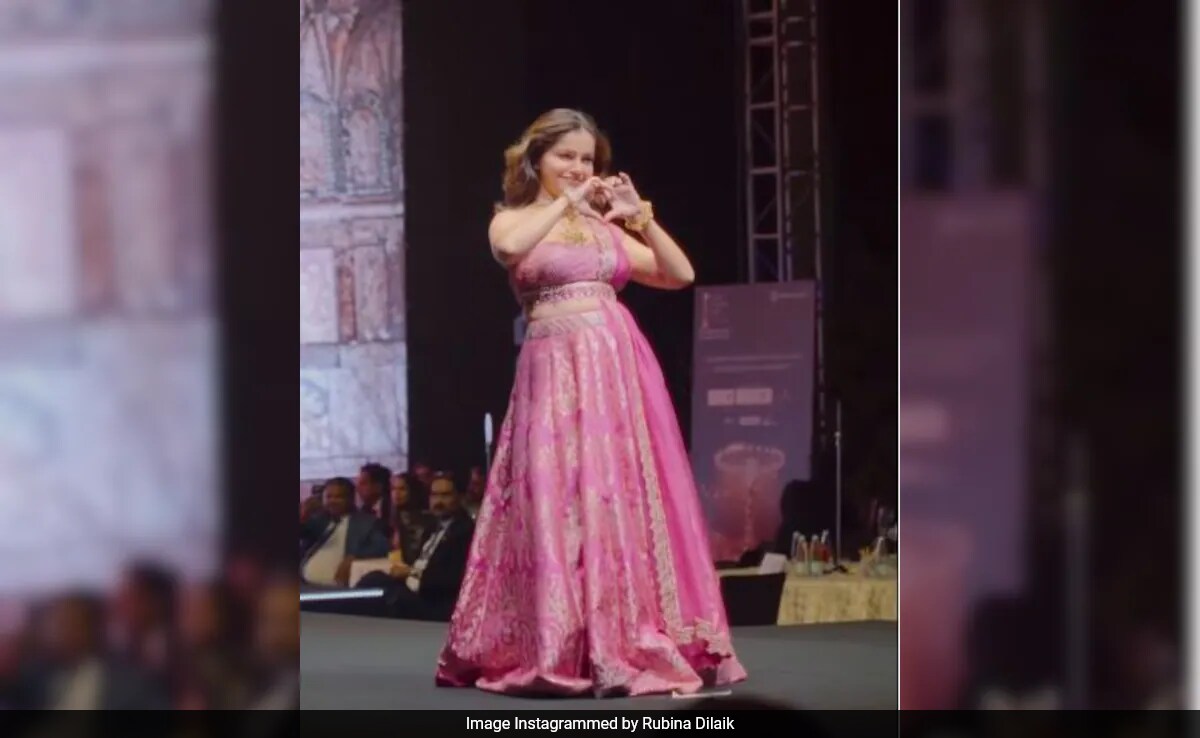 Rubina Dilaik owned the ramp like a queen and how. The Television actor recently walked for designer Archana Kochhar at a fashion event. Dressed in a gorgeous pink lehenga, Rubina stumbled in her high heels after walking for a few seconds. However, the near-fall couldn't dampen her spirit and confidence and she took the situation in her stride. Showing off style, swag and poise, the actor quickly slipped off her shoes and walked the ramp barefoot. She made a heart gesture for the audience. Rubina shared the video on her Instagram feed and she wrote in the caption, "Did she stumble? No she slayed." The video received mixed reactions from the Internet. A section of the virtual audience praised her confidence while others trolled her for "overacting." A comment read, "Overacting ki dukaan." Another comment read, "Our very own slaying queen RD." Take a look: