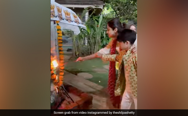 Shilpa Shetty celebrated Dussehra by burning Ravan's effigy at her home in Mumbai. On Wednesday, the actor shared a video on her Instagram handle, in which, she can be seen lighting Ravan's effigy with her son Viaan Raj. The mother-son duo can be seen wearing ethnic outfits. Shilpa can be seen wearing a white kurta set. Her video also features her daughter Samisha Shetty Kundra. She captioned her post, "Aaj Raavan-dahan ke saath apni saari chintaaon ko jalaa kar, utsah se ek nayi shuruvat karne ki koshish karte hain. Dussehra ki dheron shubhkaamnayein aap sabhi ko (Today, along with burning an effigy of Ravan, let's burn all our worries and start a new beginning with excitement. Happy Dussehra to you all) Jai Shree Ram." Her caption was accompanied by the hashtags Dussehra, Jai Mata Di, Jai Shri Ram, Traditions, Blessed, Gratitude, Festivals of India, Family Time and Ravan Dahan.