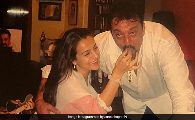 Ameesha Patel's throwback game is getting stronger every week. Her latest upload features Sanjay Dutt. Ameesha, who is a close friend of Sanjay Dutt, shared a picture from the time when he threw her a birthday party. Dressed in a pink outfit, Ameesha is seen feeding Sanjay Dutt a piece of her birthday cake in the throwback photo. The two have worked together in films such as Tathastu (2006) and Chatur Singh Two Star (2011), among others. Ameesha Patel described Sanjay Dutt as “the most golden-hearted man in the industry.” She wrote: “Throwback weekend... my private birthday celebration (at) Sanjay Dutt home... with only closest friends and family. My darling Sanjay Dutt made it so special for me... the most golden-hearted man in the industry.” Ameesha has also worked with Sanjay Dutt in Yeh Hai Jalwa.