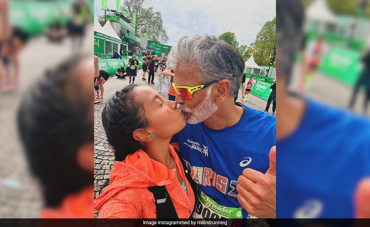 Milind Soman's recent Instagram upload is screaming couple goals and how. The actor is in Paris with his wife Ankita Konwar and has shared a series of posts featuring pictures from a marathon, a bunch of images in front of the Eiffel Tower, and some clicked in the streets of the city of love. The frames that left us gushing were the ones in which the two are lovingly sharing a kiss. In the first snap, the duo is kissing, while dressed in their jerseys for the marathon. Did we hear awww already? A few slides ahead, Ankita is seen pecking Milind on his cheek. Wait, there is more, even in the last slide, the two made sure to spread love by kissing each other with the iconic Eiffel Tower in the background.