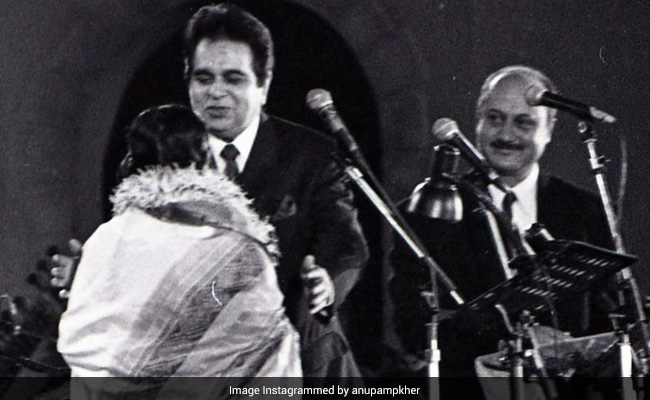 Sometimes, certain events stick to us so strongly that we carry them in our memories and later bring them out to relish those gems of the past. Actor Anupam Kher has many of these gems stacked into his bag of memories and he has brought out one of his black-and-white photos to warm our hearts. His latest Instagram post shows a photo of himself standing on a stage beside the late actor Dilip Kumar, who is seen talking to a woman whose face we cannot see. The photo is a touching reminder of the Bollywood legend Dilip Kumar who died on July 7 this year.
