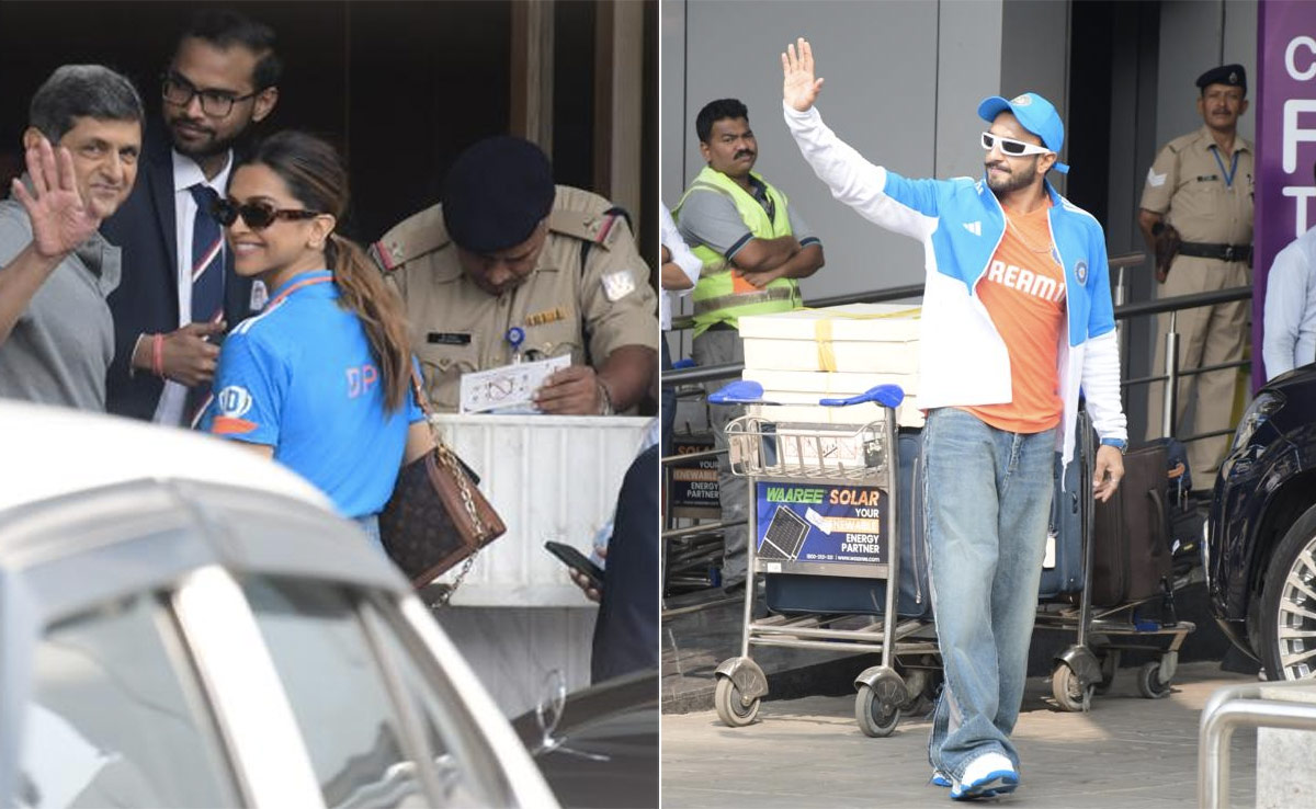 Deepika Padukone and Ranveer Singh gave the World Cup semi-final between Team India and New Zealand a miss but they were seen making up for it on Sunday morning as they were spotted leaving for Ahmedabad to cheer for the men in Blue.