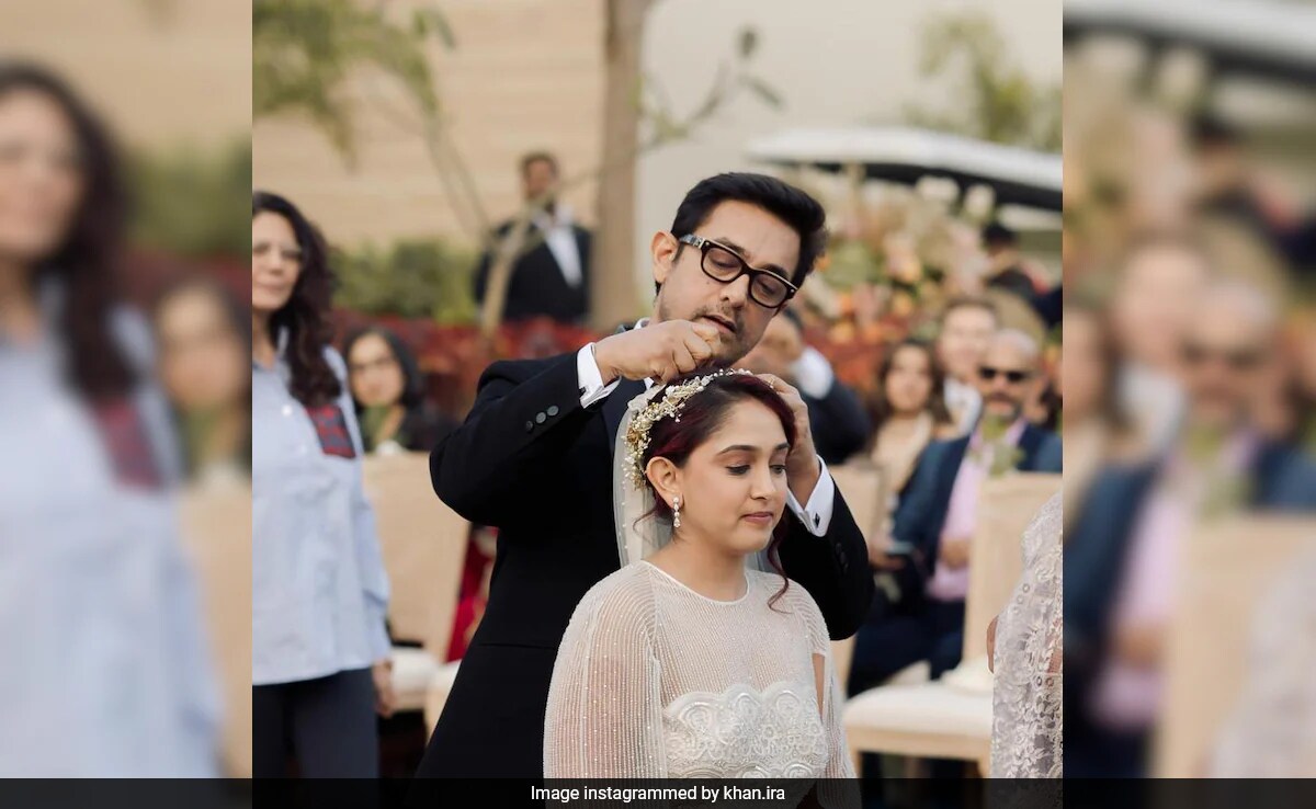 Actor Aamir Khan celebrated his 59th birthday on Thursday. To wish her father, Ira Khan posted a set of pictures from her wedding festivities. In the Instagram entry, the first upload is from Ira's white wedding. Here, Aamir is seen helping Ira with her veil. The next slide is from her Sangeet night. We can see Aamir planting a kiss on Ira's forehead. We also get glimpses of Ira and Aamir having a blast at her Mehndi festivities. Sharing the heartwarming album, Ira wrote, “Hi. Happy Birthday. I was thinking about how you keep messing up my hair… and then I remembered that you've been doing that since I was 5! With all the boycuts. Love you lots, soon-to-be old man.” She has also dropped smiling faces with hearts and monkey covering its eye emojis in the caption.