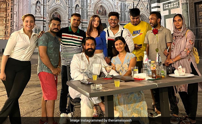 Kannada superstar star Yash enjoys a massive fan following all across the globe. And after the humongous success of his latest film KGF Chapter 2, his admirers can't stop gushing about him. The actor who received a lot of love for his character Rocky is enjoying a dreamy vacation abroad with his wife Radhika Pandit. Amid his holiday, the actor has been sharing updates with fans and his latest post on Instagram will make you smile. He shared a picture posing with his wife and fans, appreciating them for showering so much love. His caption reads, “Your love for me reaches beyond borders, I accept it with open arms...” He also added, “A huge thank you to these wonderful fans I met from Italy and Bangladesh for staying post working hours and making it special for us,” with a heart emoji.
