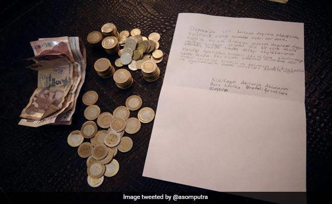The boy and his mother visited the Duzce branch of the Turkish Red Crescent and gave the money to the authorities. The young boy also wrote an emotional letter to the survivors.