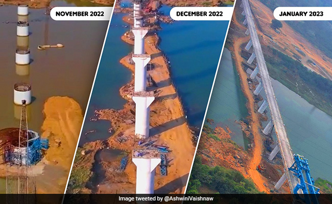 "Bullet Train project at a fast pace. Construction done 320m long bridge over Par River," the minister captioned the photo.