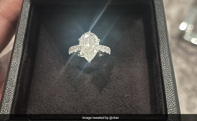 Her latest tweet shows a glitzy ring inside a box along with a caption, "There r no words, alexander, A.E." In a follow-up tweet, Cher noted that those are his hands holding the box.