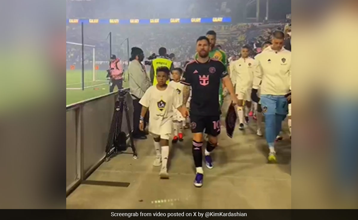 American celebrity Kim Kardashian recently shared a video of her 8-year-old son Saint, walking onto the field with football legend Lionel Messi as a player escort ahead of the L.A. Galaxy vs Inter Miami Major League Soccer game on Sunday. The SKIMS founder said that her son was "living the absolute dream".