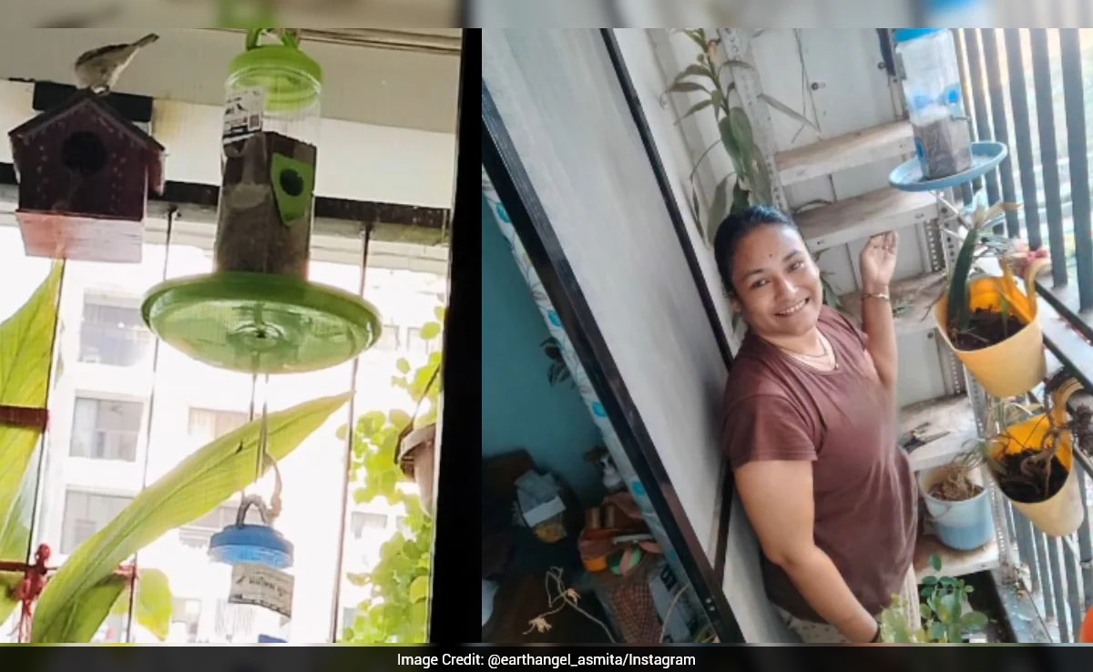 A woman in Dombivli is gaining attention on social media for her love of nature and the environment. She has transformed her balcony into a green space where sparrows and birds can be seen. Most mornings, as the city's daily hustle and bustle begins, Asmita Purohit stands quietly on her small balcony, running her fingers over the glossy leaves of her money plant. Birds flit in and out of the birdhouse above her head, their melodious chirping becoming a soothing melody, reported The Better India.