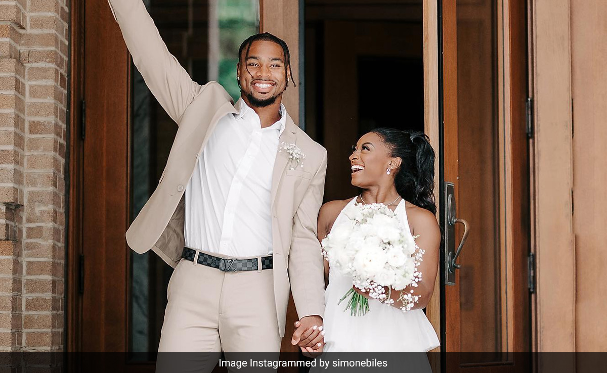 American gymnast and seven-time Olympic medallist Simone Biles tied the knot with National Football League player Jonathan Owens. The 26-year-old gymnast announced the news of her marriage on social media yesterday. Ms Biles also shared a series of pictures from the ceremony and said, "I do, officially Owens" along with a white heart emoji.