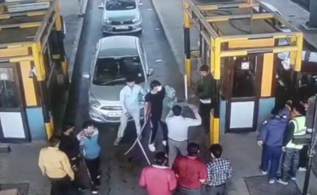 The fierce fight was captured on CCTV. It showed a group of men thrashing workers at the toll plaza with a stick, before breaking the barrier and escaping the scene.