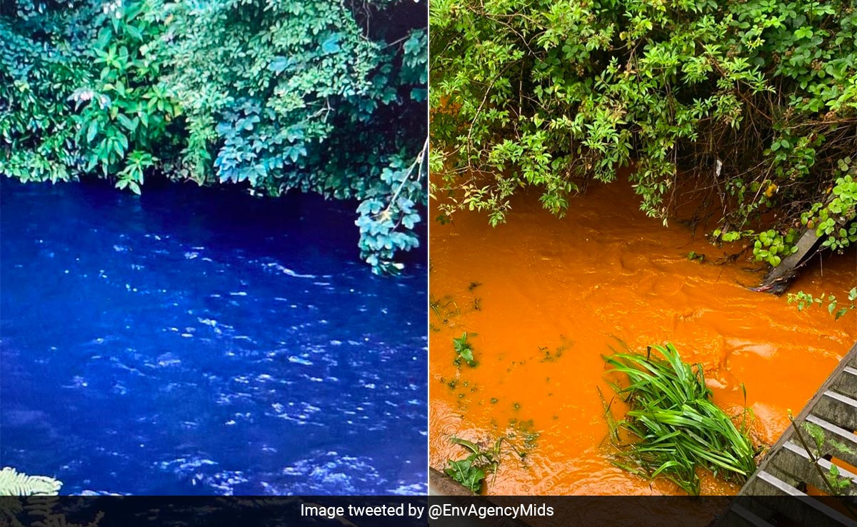 The British government's environment agency has alerted the public that after clothes dyes were inadvertently spilled into the water, a portion of the River Trent in North Staffordshire has turned electric blue and bright orange.