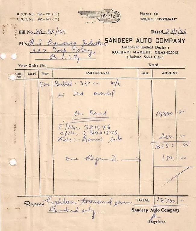 Back then, the bullet mentioned in the bill was simply known as the Enfield Bullet. It was a dependable motorcycle that was mostly used by the Indian army to patrol border areas.