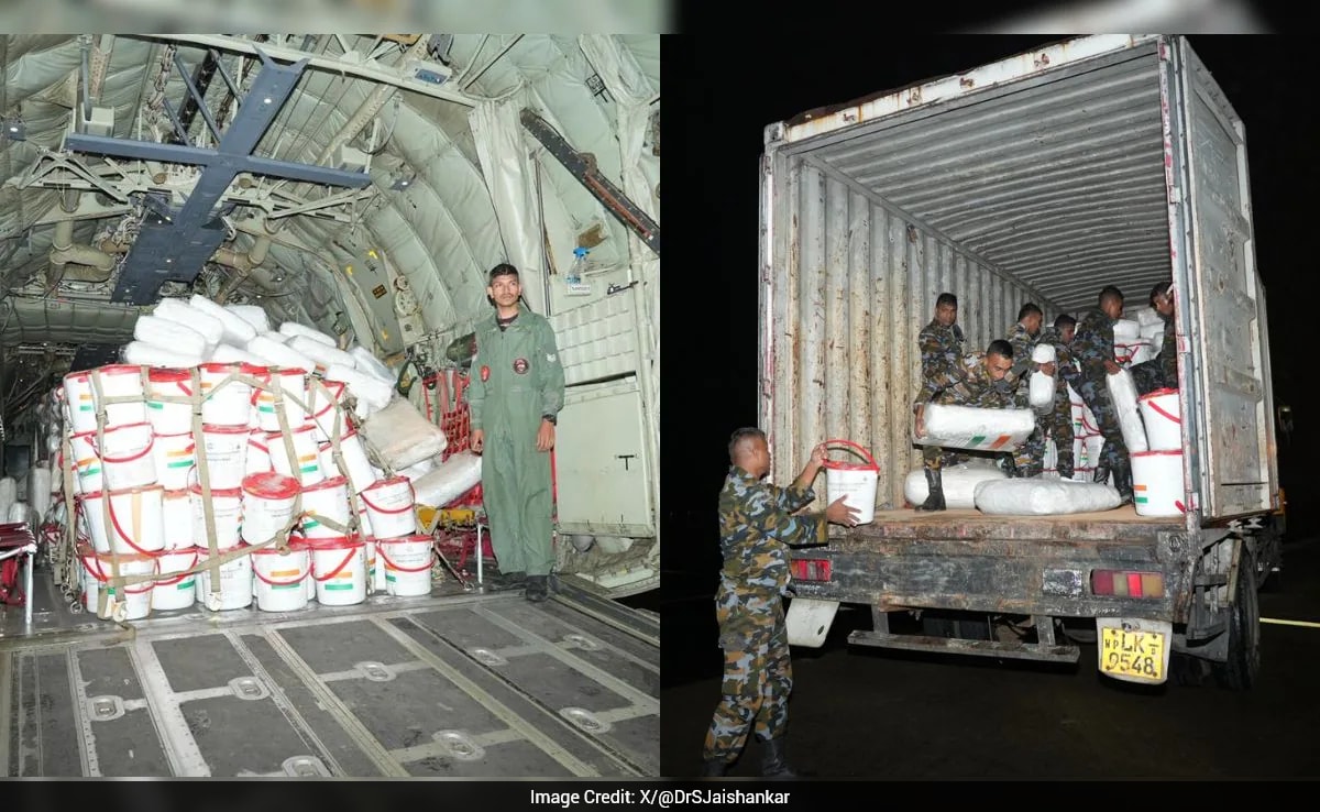 The first shipment, comprising 4.5 tonnes of dry rations and 2 tonnes of fresh rations, was sourced from the Indian naval ships INS Vikrant and INS Udayagiri, which are currently docked in Sri Lanka. On November 29, an Indian Air Force aircraft carrying “around 12 tonnes of humanitarian aid, including tents, tarpaulins, blankets, hygiene kits, and ready-to-eat food items” reached Colombo.