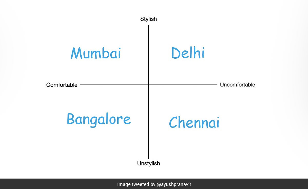 A social media user named Ayush Pranav created a chart related to dressing sense in the four major cities of the country, and his post received mixed reactions.