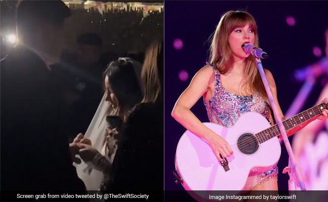 A video of the incident which is going viral on social media shows Rene Hurtado tying the knot with her partner Max Bochman while standing in the front row at Taylor Swift's second show in Glendale, Arizona. Dressed in a white dress and veil, the bride is seen exchanging vows with the groom in a tuxedo. As the newlyweds shared a kiss upon completion of vows, Swifties in attendance erupted in cheers and claps.