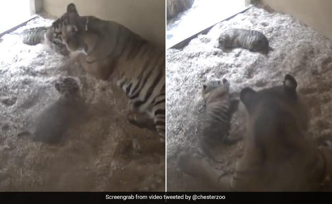 The official account of Chester Zoo shared the video on Twitter and wrote, ''We're delighted to share that two incredibly rare Sumatran tiger cubs have been born! Our hidden cameras captured first-time mum Kasarna and her adorable new arrivals soon after birth on January 7.''