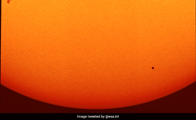 According to the ESA, in the Polarimetric and Helioseismic Imager (PHI) image, Mercury is seen as a black circle in the lower right quadrant of the image. It is distinctly different from the sunspots that can be seen higher up the sun's disc.