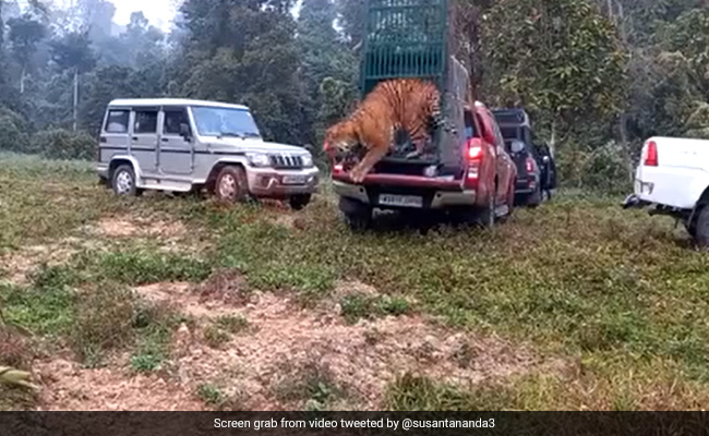 In a tweet, Mr Nanda wrote, "This tiger swam more than 50km downstream in Brahmaputra river to reach Umananda Island in Assam. Was captured & after a through health check up was released back into the wild at Nameri Tiger Reserve today. Well done team Assam. Source: FD." In the video, the wild tiger is seen jumping out of a cage at the back of a car that has been left open and slowly disappears into the bushes.