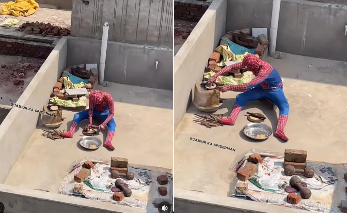Recently, a viral video featuring a costumed figure in Jaipur has grabbed many eyeballs on Instagram and sparked a meme fest in the comments. In the reel, we see a person dressed like the popular superhero Spider-Man making rotis. Yes, you read that right. The clip, shared by @jaipur_ka_spiderman zooms in on the person seated on a sunny, open rooftop. We see them flatten the dough using a rolling pin to make the rotis. They also flip a roti already cooking on the heat. Take a look below: