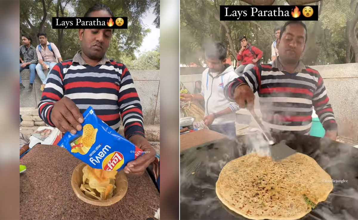 Nothing beats the comfort derived from the crisp and crunch of potato chips. Apart from enjoying them as they are or pairing them with dips, people also love to experiment with these chips to make unconventional snacks and dishes. These fusion treats are made by not only food vloggers but street vendors as well. One of the latest experiments taking Instagram by storm is "Lays Paratha". This unusual form of what is technically an aloo (potato) paratha has sparked different reactions online. In the Instagram reel by @foodiejunglee, we see the street vendor emptying two packets of potato chips into a bowl. He chooses the green and the blue packets for this dish.