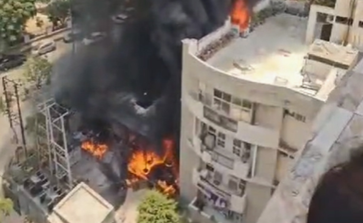 Four flats in front of the generator were on fire after the blaze spread. Visuals show orange flames reaching the terrace of the society and black smoke billowing for over a hundred feet in the sky.