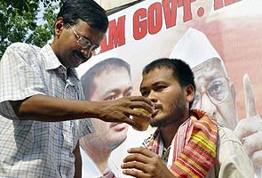 Akhil Gogoi, who has been on an indefinite fast since May 19, was fed a glass of juice by another Team Anna member Arvind Kejriwal at around 3.30 pm.